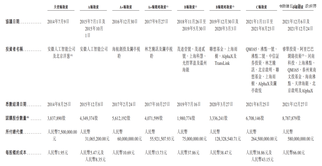其中,对公司加持多轮的沸点资本持股10.70%;安徽人工智能公司持股9.57%;腾讯持股9.09%;启明创投旗下QM165与北京启明合计持股约5.39%;联想基金持股4.22%;阿里巴巴旗下杭州灏月持股2.94%。